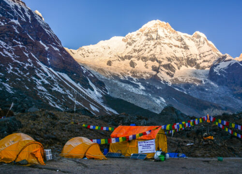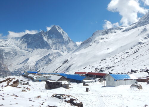 - Ascend to ABC through Machapuchare Base Camp (3,720 m). Enjoy panoramic views of Annapurna I and surrounding peaks.