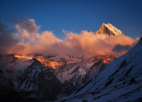 The Annapurna Base Camp Trek (ABC Trek) is a renowned trekking route in Nepal that leads to the base camp of Annapurna I, the tenth-highest mountain in the world. This trek offers breathtaking views of the Annapurna Massif, including Annapurna I, Annapurna South, Machhapuchhre (also known as Fishtail), and Hiunchuli. The route traverses diverse landscapes, ranging from lush rhododendron forests and terraced fields to arid regions and alpine meadows. Along the way, trekkers can immerse themselves in the rich culture of the Gurung and Magar communities, visit charming villages, and enjoy stunning sunsets over the Himalayas.