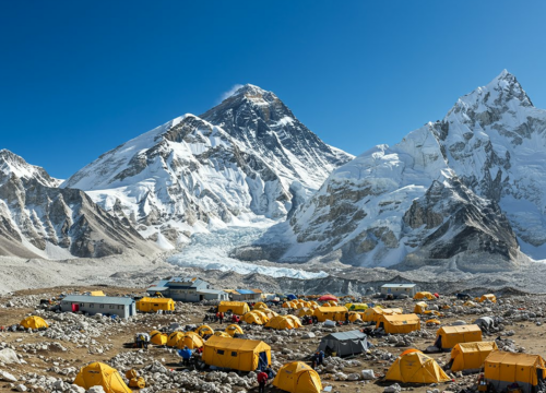 Along the climbing route, several camps act as strategic resting and acclimatization points. Camp I, located at 5,900 meters (19,500 feet), serves as the first major stop. Camp II, at 6,400 meters (21,000 feet), is often referred to as the “advanced base camp,” offering climbers a critical rest point before tackling the higher altitudes. Camp III, situated at 7,300 meters (23,700 feet), is specifically designed for climbers to acclimatize further and prepare for the strenuous ascent to Camp IV. Normally, climbers aim to summit during a slim window in May, when weather conditions are considered most favorable, and the chances of success are at their peak.